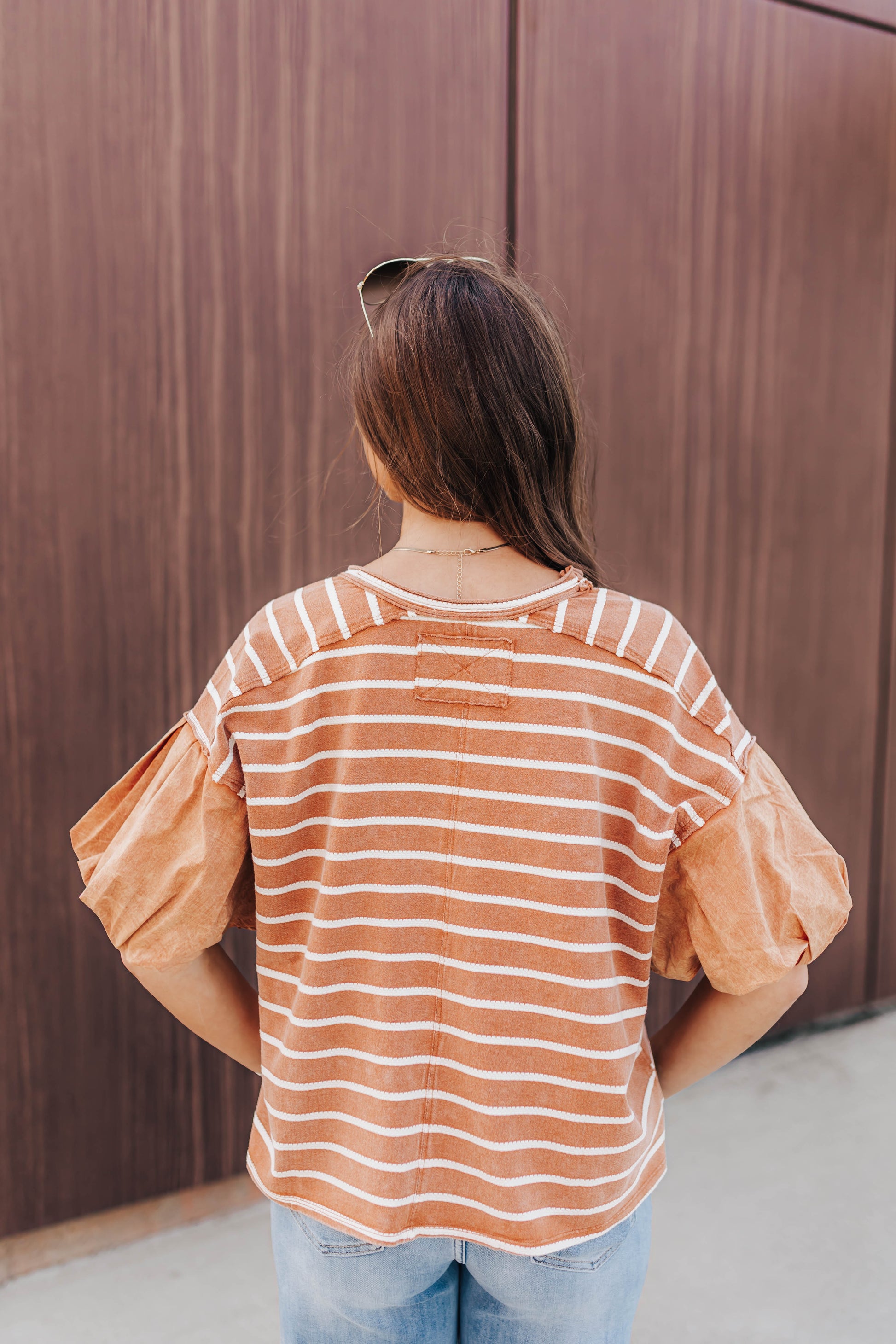 Effortlessly feminine with a vintage-inspired twist, the Laine Striped Top brings soft structure and standout detail to your fall wardrobe. Featuring a relaxed silhouette with contrast puff sleeves, this piece blends everyday comfort with elevated design.